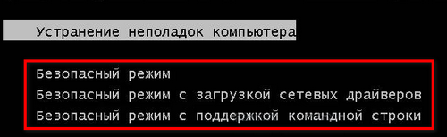 - Безопасный режим. Стандартный вариант с запуском базового ПО.