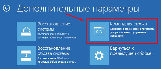 - Затем открываем «Устранение неполадок / Дополнительные параметры» и перемещаемся в «Командную строку».