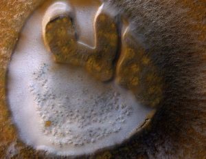 Сухой лед на дне одного из марсианских кратеров. Источник: NASA/JPL/University of Arizona