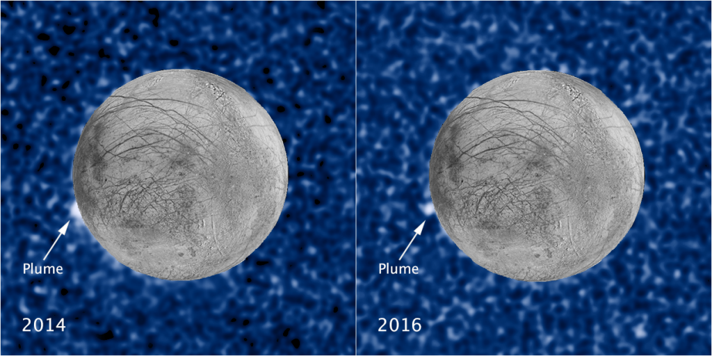 Миссия Galileo была завершена в 2003 г. С тех пор в науке многое изменилось. С одной стороны, астрономы обзавелись намного более совершенными способами обработки данных. С другой — они узнали много нового о самой Европе. Так, недавние наблюдения телескопа Hubble показали, что время от времени этот спутник производит выбросы водяного пара. Не исключено, что их источником является вода из подповерхностного океана Европы.