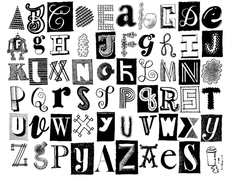 - экспериментальные шрифты, где буквы превращаются в элементы иллюстраций.