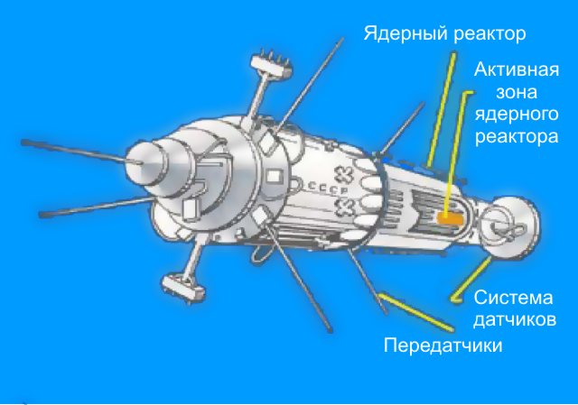 Дело в том, что УС-А выводились на низкую орбиту с апогеем 250 км, что было необходимо для нормальной работы радара. При этом применить солнечные батареи было невозможно, поскольку спутник должен был работать и на теневой стороне Земли. Поэтому на них устанавливались ядерные установки БЭС-5 «Бук», выдававшие около 3 кВт электроэнергии. Внутри реактора располагалось около 30 кг урана-235. Общий ресурс установки составлял около 4 месяцев.