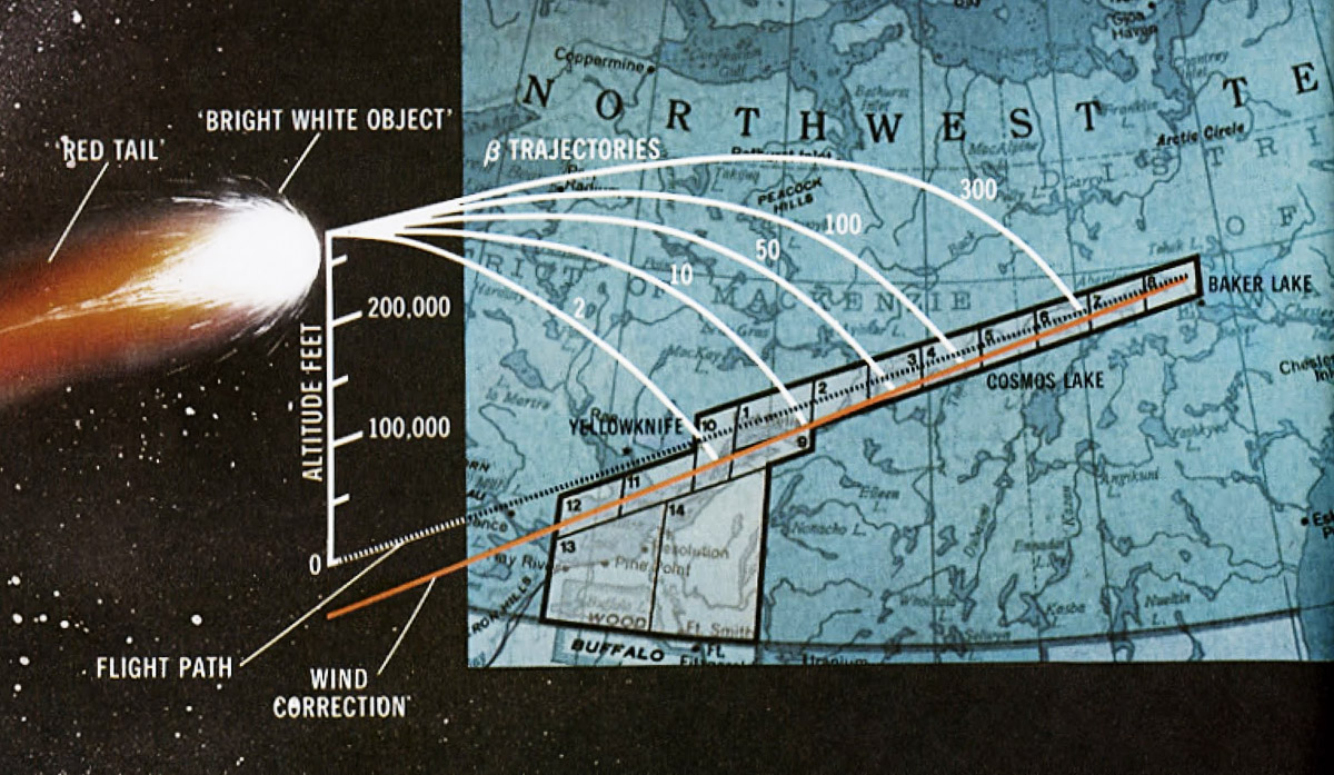 Схема выпадения обломков Космос-954 в Канаде. Источник: http://fly.historicwings.com