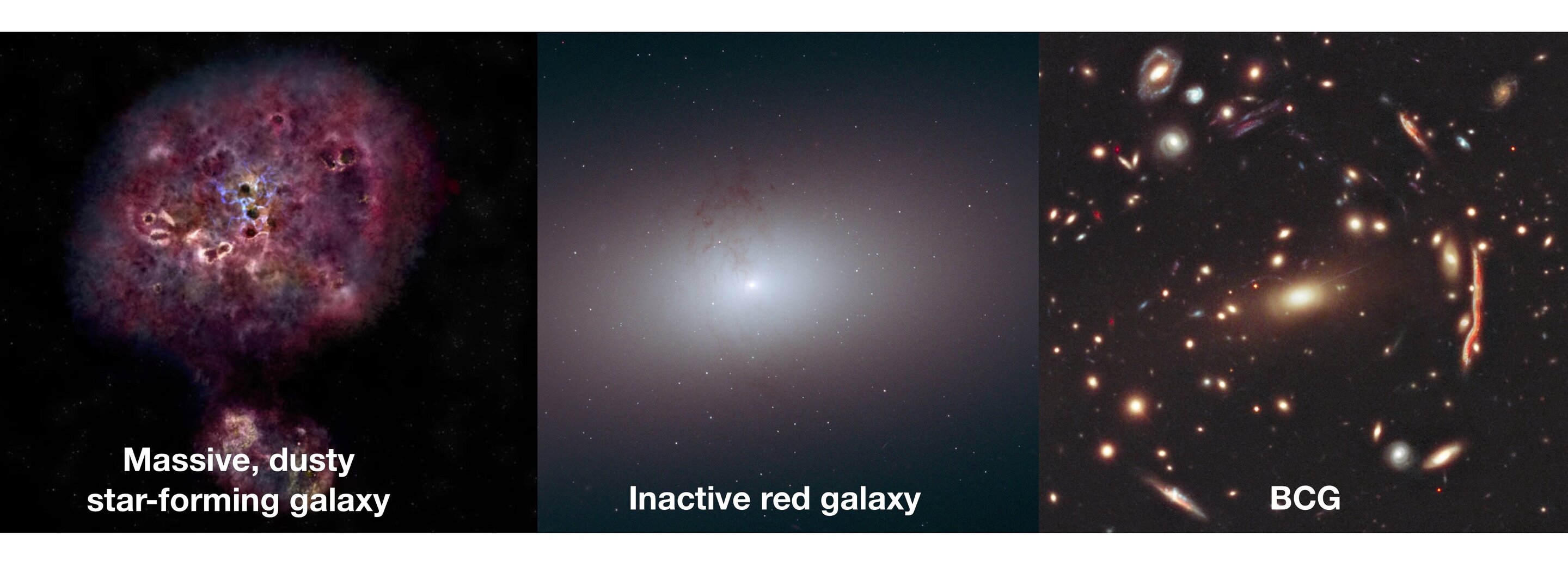 Возможный жизненный путь галактики XMM-2599. Источник: NRAO/AUI/NSF/B. Saxton; NASA/ESA/R. Foley; NASA/StScI.