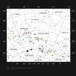 Положение PDS 70 на небе. Источник: ESO, IAU and Sky & Telescope