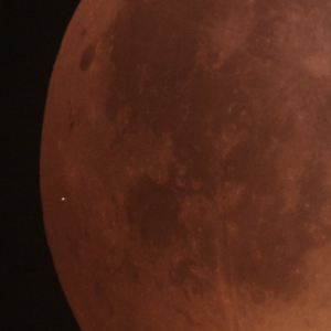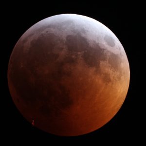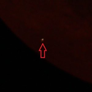 Фотография Луны, сделанная во время затмения 21 января 2019 г. У юго-западного края лунного диска можно увидеть яркую точку. Это вспышка от падения метеорита. Источник: Christian Fröschlin