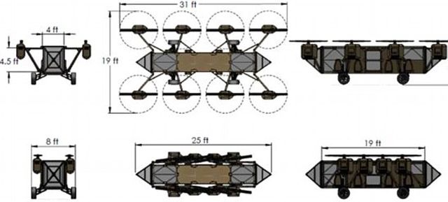 В комплектацию «трансформера» входят восемь роторов, которые связаны с компьютеризированной системой управления, удерживающей баланс тяги. Впрочем, данный параметр, как мы уже говорили, может изменяться оператором.