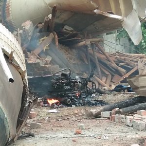 Кадры демонстрирует последствия падения — горящий дом, множество обломков, а также сам ракетный ускоритель. На видеозаписи можно увидеть поднимающийся от него характерный желто-оранжевый дым. Это пары ракетного топлива — смеси тетроксида диазота и несимметричного диметилгидразина. Оба вещества весьма токсичны и опасны для человека.