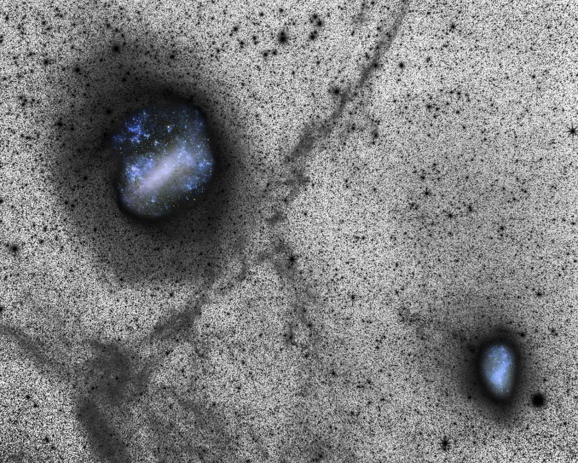 Подобно планетам-гигантам Солнечной системы, наш Млечный Путь обладает множеством спутников — небольших галактик, связанных с ним гравитационно. Наиболее известными подобными объектами являются Большое и Малое Магеллановы Облака (БМО и ММО). Эти две карликовые звездные системы, первая из которых удалена от нас на расстояние около 170 а вторая — 200 тыс. световых лет, можно увидеть невооруженным глазом на южном небе.