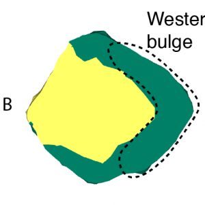 На первый взгляд, астероид Рюгу (162173 Ryugu) имеет относительно симметричную форму и внешне напоминает волчок. Однако анализ данных, собранных автоматическим аппаратом «Хаябуса-2», свидетельствует о том, что западное и восточное полушария этого объекта отличаются друг от друга.Первое обладает более гладкой поверхностью и покрыто меньшим количеством кратеров, чем противоположная сторона «небесного камня». Кроме того, проходящий через
