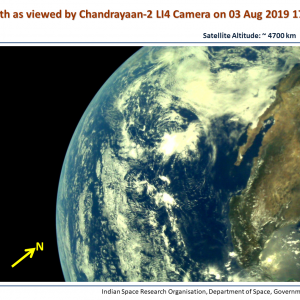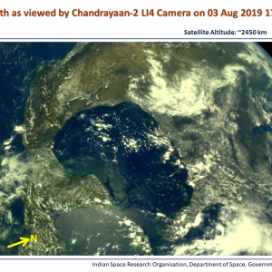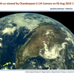 Индийская организация космических исследований (ISRO) объявила о том, что автоматический аппарат «Чандраян-2» успешно осуществила пятый и последний маневр по поднятию высоты орбиты. Сейчас он находится на околоземной орбите с перигеем 276 км и апогеем 142 975 км. Кроме того, ISRO опубликовала первые фотографии, сделанные камерами зонда. На них можно увидеть нашу планету.