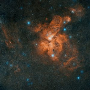 Звезда η (эта) Киля является одной из самых известных переменных звезд в истории астрономии. В начале XIX века ее блеск начал быстро увеличиваться. К 1843 г. она стала второй по яркости звездой на ночном небе после Сириуса. Астрономы назвали это событие «Великой вспышкой». Однако блистала она недолго — уже через несколько лет яркость звезды стала уменьшаться. Сейчас она находится на грани видимости невооруженным г
