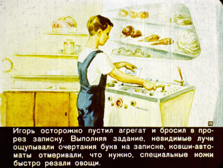 Видим молодого человека перед чудо-аппаратом, который способен распознать записку с рукописным списком блюд и приготовить их. Увы, сегодня мы не имеем в своем распоряжении такого интеллектуального бытового кухонного гаджета. Если следовать логике, то такой аппарат должен быть предварительно загружен разнообразными продуктами питания, которые впоследствии используются для приготовления желаемых блюд. Такой умный робот-кулинар должен иметь в своей памяти списки многочисленных блюд, рецептуру и порядок их приготовления.