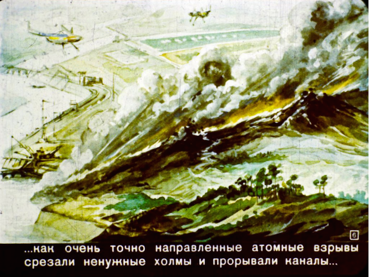 Эх, тогдашнее общество 60-х еще не знает плачевных последствий использования атомной энергии — катастрофы на Чернобыльской АЭС в 1986 г. Сегодня есть концепты создания бытовых мини-реакторов, работающих на атомной энергии, но в массы запускать их никто не спешит. Да и как вообще создатели технологии направленных атомных взрывов собрались бороться с радиационными последствиями?