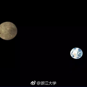 Изображение Земли и Луны сделанное спутником-ретранслятором «Цюэцяо». Источник: CNSA