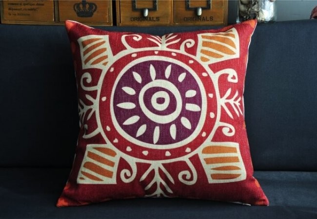 Ще один спосіб підібрати цікавий комплект подушок — вибирати контрастні кольори. Наприклад, для дивана з оббивкою теплого бежевого кольору можна підібрати подушки темних і світлих відтінків синього, а оббивку холодного сірого кольору прикрасять подушки червоного або оранжевого + теплого зеленого кольорів. Якщо ви вибираєте тканини для подушок з візерунком, комбінувати може бути трохи складніше, зате — цікавіше. Для початку, щоб не помилитися, можна дотримуватися правила: основна кількість подушок — одного типу візерунка, 1-2 додаткових — іншого. Приклад: 3 подушки з геометричними візерунками + 2 з рослинним. Або: 4 подушки в різну клітину або смужку + 1-2 з квітковим або абстрактним візерунком.