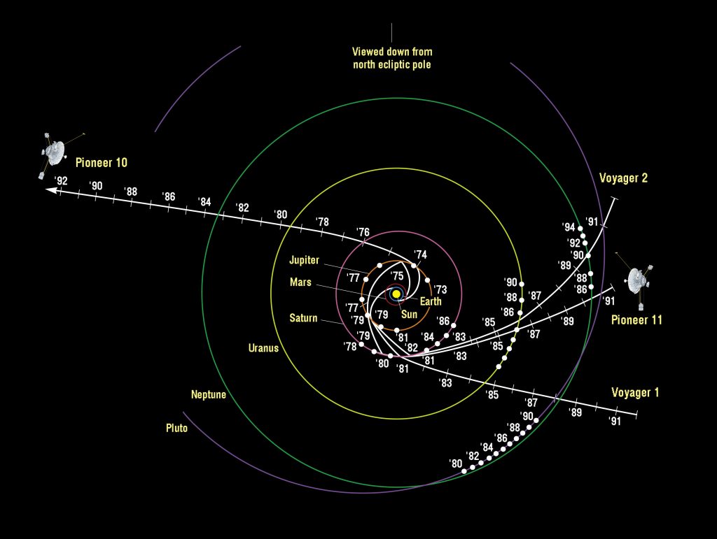 Траектории полета аппаратов, покидающих Солнечную систему. Источник: NASA
