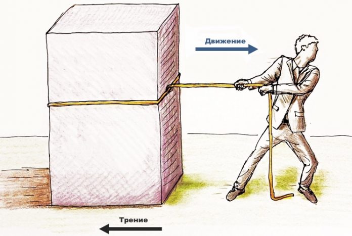 Трудно сдвинуть стоящий на полу тяжелый ящик — мешает трение. Если прикладывать к ящику все большую силу, то наконец наступает момент, когда ящик начнет перемещаться.