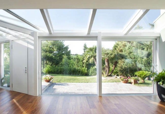 Для уменьшения теплопотерь используются стеклопакеты с низкоэмиссионным покрытием, с камерами, заполненными инертным газом, и ПВХ вместо алюминиевого профиля. Если рамы слишком тяжелые, то конструкция усиливается металлическим профилем. При остеклении веранд встраиваются стеклянные двери, раздвижные и складывающиеся гармошкой, рамные и безрамные. Все подробности вы найдете тут.