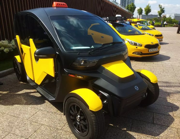 Итак, с необходимостью разобрались. Наконец коснемся самого интересного в анонсируемом электромобиле UV-4 от компании «Калашников». На презентационной площадке международного форума «Такси» он был представлен в черном цвете с желтыми вставками на арках и дверях. Выглядит очень даже современно и стильно при однозначно заметной особенности минимализма в целях снижения массы, которая равна 650 кг. Пока не совсем ясно, но судя по массе, материалы каркаса авто скорее всего сделаны их полимеров. Мощность электродвигателя в 50 кВт способна разогнать электрокар до максимальной скорости в 80 км/ч, что вполне достаточно для передвижения в рамках городского цикла или внутри предприятия.