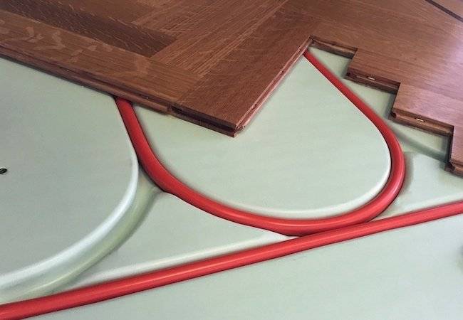 Принцип работы водяного теплого пола основан на использовании в качестве источника тепла горячей воды, циркулирующей по металлопластиковым или полиэтиленовым трубам небольшого сечения. Однако водяной пол имеет довольно большую толщину – от 10 до 20 см вместе со слоем теплоизоляции.