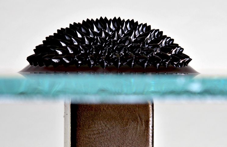 В зависимости от силы и направленности воздействия магнитного поля, картины меняются на глазах – от легкой, едва заметной ряби, появляющейся на поверхности жидкости, через иглы и пики, меняющие остроту и наклон и перерастающие в цветы и деревья.