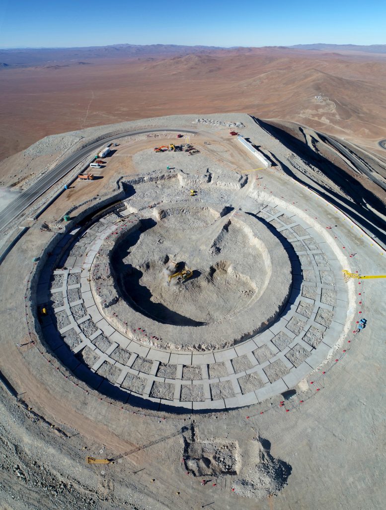 2020-е годы станут началом эры сверхбольших инструментов, способных произвести революцию в наших представлениях о Вселенной. Одним из них станет Чрезвычайно большой телескоп Европейской Южной обсерватории (ELT ESO). Его строительство уже началось на вершине чилийской горы Серро Армазонес. Представленное фото демонстрирует фундамент будущей гигантской обсерватории. На нем мы видим паутину строительных коммуникаций и различного оборудов