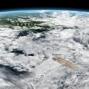 Извержение вулкана Райкоке глазами спутника Terra. Источник: NASA Earth Observatory images by Joshua Stevens, using MODIS and VIIRS data from NASA EOSDIS/LANCE and GIBS/Worldview and the Suomi National Polar-orbiting Partnership