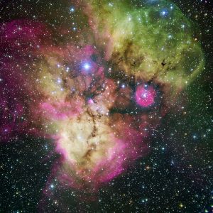 Очень большой телескоп Европейской Южной обсерватории (VLT ESO) сфотографировал область активного звездообразования NGC 2467, также иногда называемую туманностью «Череп и Кости» и находящуюся в южном созвездии Кормы. Снимок был получен при помощи установленного на VLT приемника FORS2.