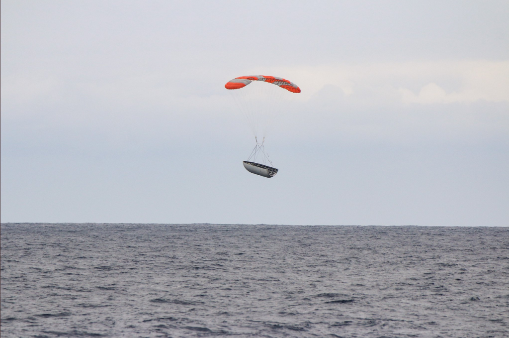 Компания SpaceX опубликовала несколько фотографий спуска и приводнения в Тихий океан головных обтекателей ракеты Falcon 9. Снимки были сделаны 22 мая. В тот день Falcon 9 успешно вывел на околоземную орбиту очередную партию спутников связи Iridium NEXT и пару научных аппаратов GRACE-FO.