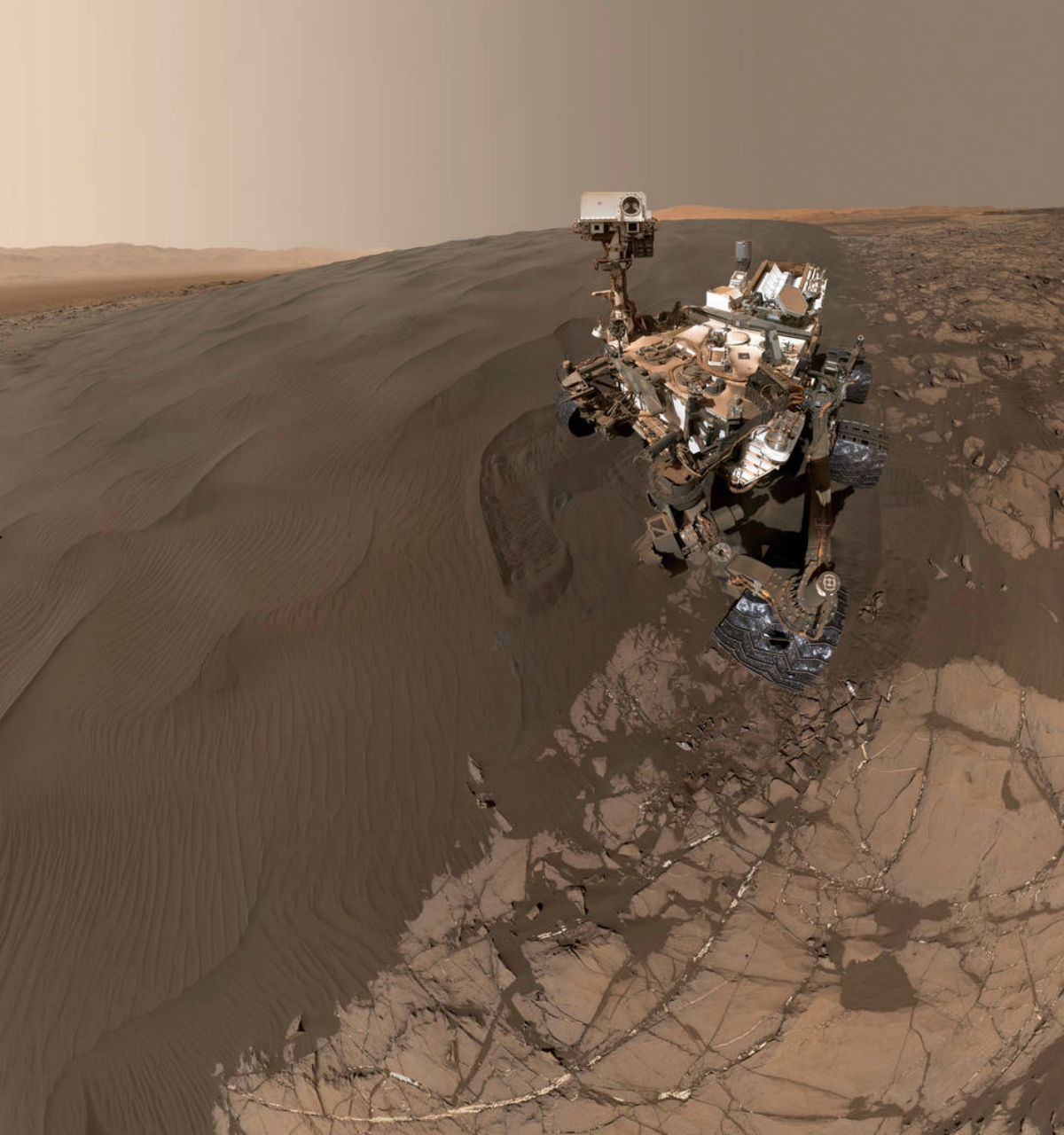 Но, помимо Opportunity, на поверхности планеты работает еще один марсоход — Curiosity. Благодаря радиоизотопному термоэлектрогенератору ему не страшны изменения уровня освещенности. Ровер по-прежнему выполняет свою научную миссию и передает снимки марсианский поверхности. Более того, недавно он сделал новое селфи.