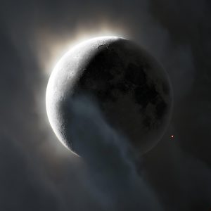 В ночь с 17 на 18 февраля жители Земли (главным образом Северной Америки) могли наблюдать достаточно интересное небесное явление — покрытие Марса Луной. Диск нашего естественного спутника на время заслонил Красную планету от наземных наблюдателей. За этим событием наблюдало много астрономов-любителей, сделавших ряд снимков «встречи» двух миров. Ниже приведены некоторые из наиболее красивых изображений, полученных в тот день.