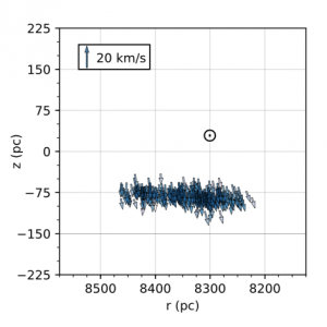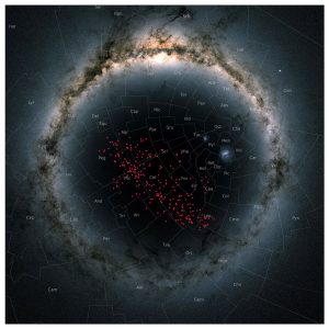 Проанализировав данные, собранные космическим телескопом Gaia, группа астрономов из Венского университета сумела идентифицировать подобное «растянутое» звездное скопление в окрестностях Солнечной системы. Оно расположено на расстоянии 320 световых лет от Солнца. Длина его составляет около 1300 световых лет, ширина — 160 световых лет. Исследователи образно сравнили его со «звездной рекой».
