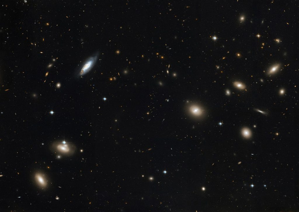 Многие из этих галактик являются эллиптическими. В их числе — NGC 4860, которая доминирует на представленном снимке, сделанном космическим телескопом Hubble. Но подобные объекты — далеко не единственные «жители» скопления. В качестве примера можно привести спиральную галактику NGC 4858, видимую в левой части изображения.