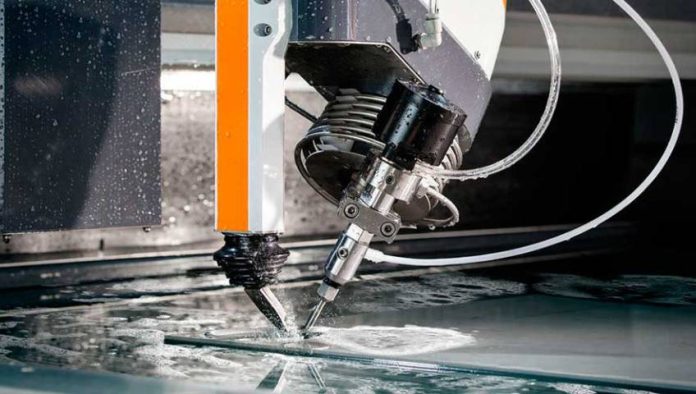 Происходит процедура с использованием гидроабразивного станка. Такое оборудование позволяет выполнять раскрой с максимальной точностью, а также контролировать скорость подачи режущей струи.