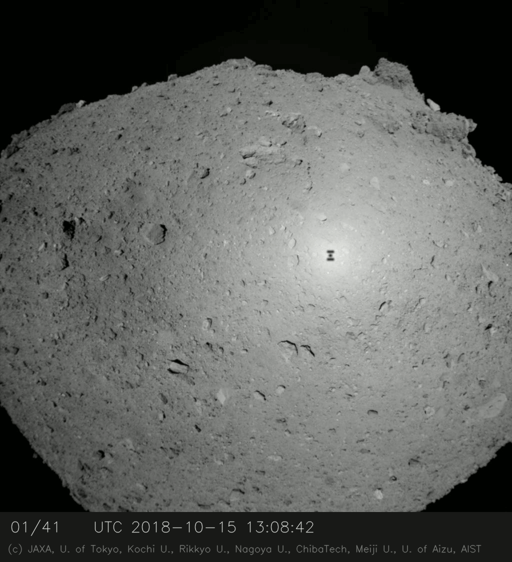 Команда миссии уже опубликовала снимок Рюгу, сделанный в тот день телескопической камерой ONC-T с высоты 42 м. Его разрешение составляет 4,6 мм/пиксель. Фото подтверждает данные модуля MASCOT