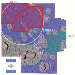 В ходе анализа сделанных зондом изображений специалисты смогли найти лишь два граничащих друг с другом небольших участка, удовлетворяющих критериям безопасности миссии. Им присвоили обозначения L08-B1 и L08-E1. После изучения всех возможных вариантов предпочтение было отдано второму из них.