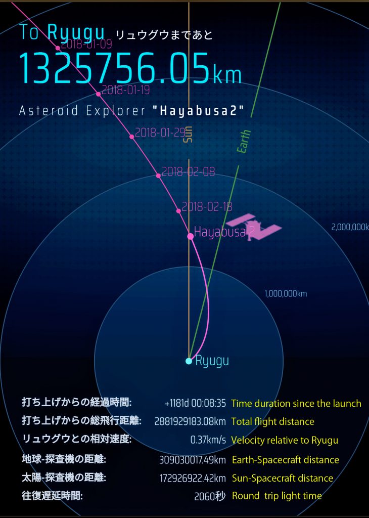 Планируется, что «Хаябуса-2» будет изучать астероид на протяжении полутора лет. После взятия проб с поверхности Рюгу станция ляжет на обратный курс. По плану, капсула с образцами астероидного вещества должна будет совершить мягкую посадку на Земле в декабре 2020 г.