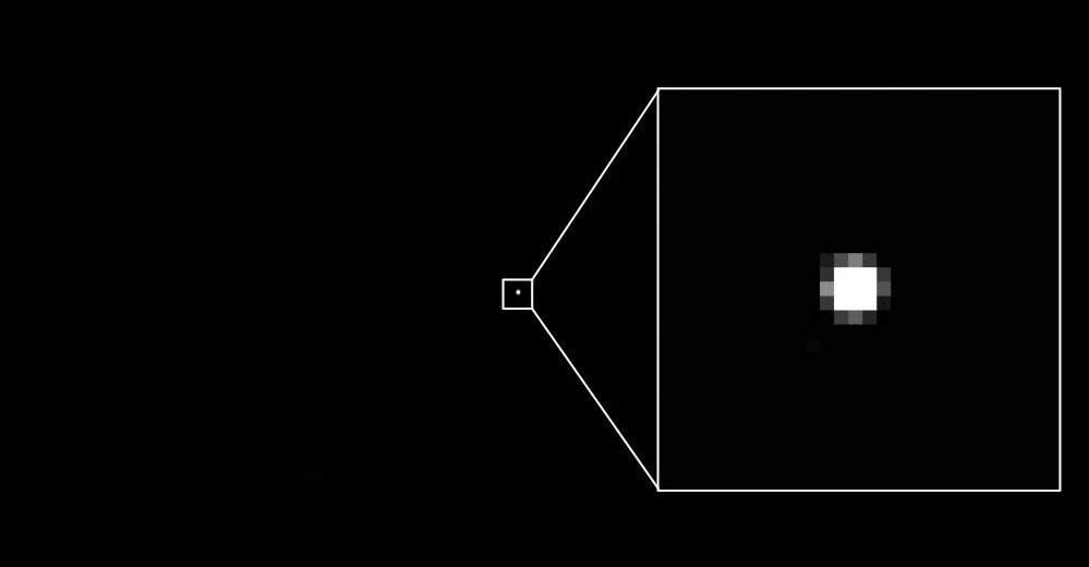 «Хаябуса-2» по-прежнему находится слишком далеко от Рюгу, чтобы мы могли рассмотреть какие-то конкретные детали его поверхности. На новых снимках астероид занимает площадь около 10 пикселей. Тем не менее, и этого достаточно, что примерно определить его параметры. Очевидно, что форму космического булыжника можно с определенной натяжкой охарактеризовать как круговую. Рюгу не состоит из двух половинок подобно комете Чурюмова-Герасименко, и не является сильно вытянутым телом, как тот же астероид Итокава.