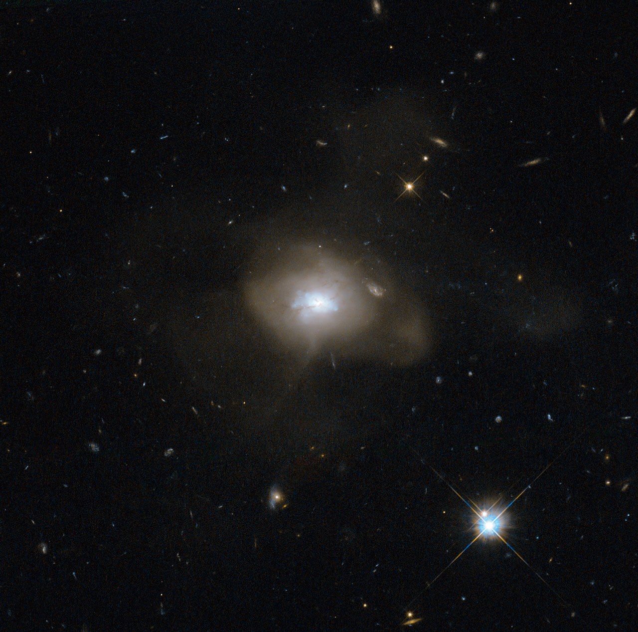 На представленном фото телескопа Hubble запечатлена галактика SDSS J162702.56+432833.9. Она не имеет четко выраженных структур и классифицируется как эллиптическая галактика. По мнению астрономов, SDSS J162702.56+432833.9 сформировалась в результате слияния, произошедшего много миллионов лет назад. Скорее всего, ее прародителями были две спиральные галактики. На снимке можно увидеть полосы пыли, закрывающие часть яркого региона в центре SDSS J162702.56+432833.9. Они могут являться остатками древних спиральных рукавов.