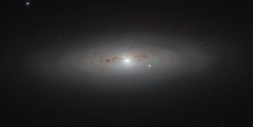 Чуть правее центра галактики также можно увидеть яркую звезду. Но это просто фоновый объект. На самом деле звезда находится в Млечном пути.