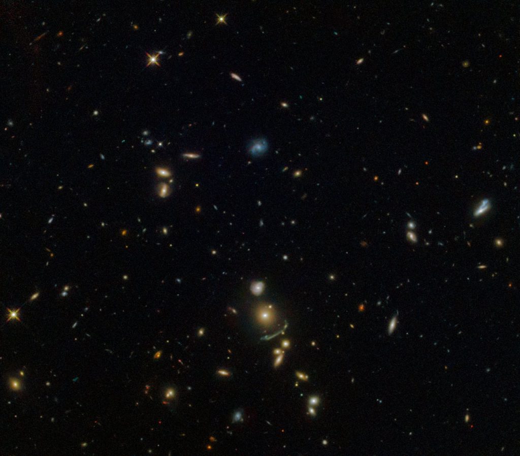 Команда телескопа Hubble опубликовала изображение далекого галактического скопления. Мы видим его таким, каким оно было 7,5 млрд лет назад — задолго до начала формирования нашей Солнечной системы. В нижней части изображения можно увидеть ярчайшую галактику скопления, известную под обозначением SDSS J1156+1911.