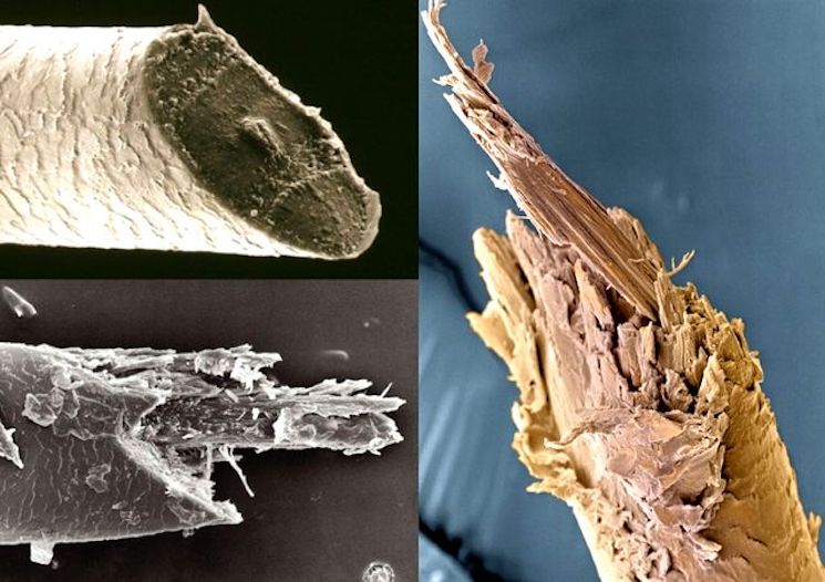 Это ни что иное как кончик человеческого волоса под увеличением. Ровный срез волоса получается при использовании бритвенного станка, в случае орудования ножницами или электробритвой конец волоса значительно повреждается. Волосы не подвергаются разложению и гниению в течение очень долгого времени — египетские мумии, которым по меньшей мере 4 тысячи лет находились с отлично сохранившимся волосяным покровом.