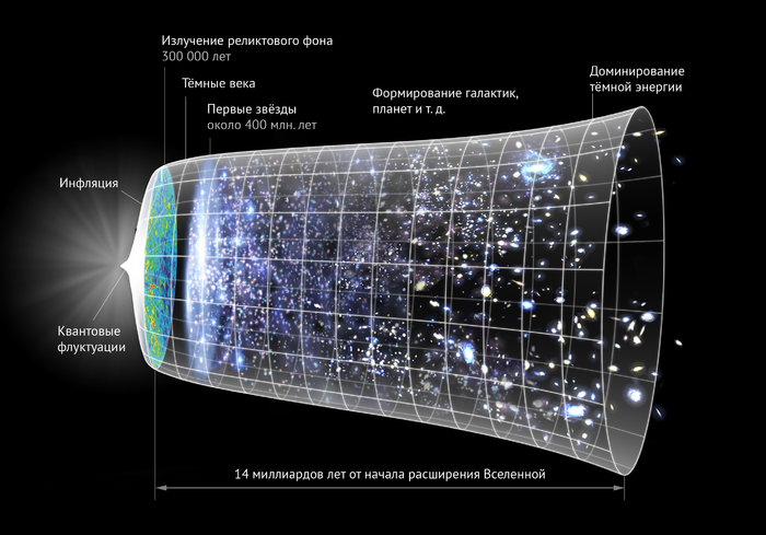 Инфляционная модель Вселенной – научная космологическая теория о законе и состоянии расширения Вселенной на раннем этапе Большого взрыва. В отличие от стандартной модели горячей Вселенной, данная теория предполагает ускоренный период расширения Вселенной на раннем этапе при температуре выше 1028 Кельвинов.