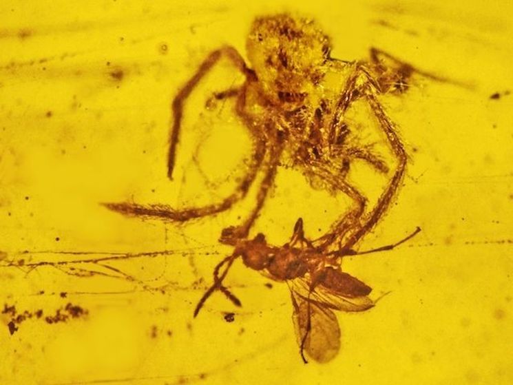 Атака паука запечетлённая в янтаре