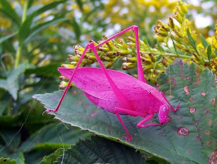 Природа окрасила кузнечика в розовый отнюдь не для маскировки, скорее это отклонение сродни альбинизму, ведь с такой пигментацией гораздо больше шансов стать добычей хищников. Зато — какая ярко-выраженная индивидуальность!