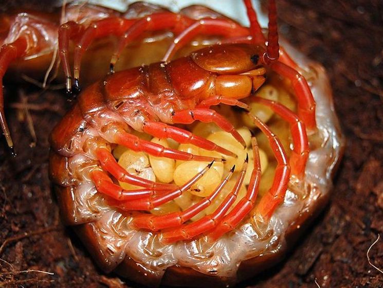 Сколопендра — опасный и безжалостный хищник, несмотря на это она проявляет поистине «материнскую» заботу о потомстве: отложенная кладка бережно охраняется матерью до первой линьки потомства.