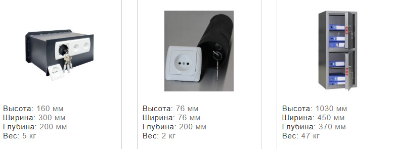 - Домашние сейфы для ценностей, документов и мелкой техники;