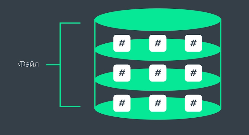 Блочное хранилище используется для структурированных данных. Информация делится на блоки с фиксированным размером, которые размещены на узлах хранения. Каждому блоку присваивается идентификатор. При запросе данных блоки собираются заново.