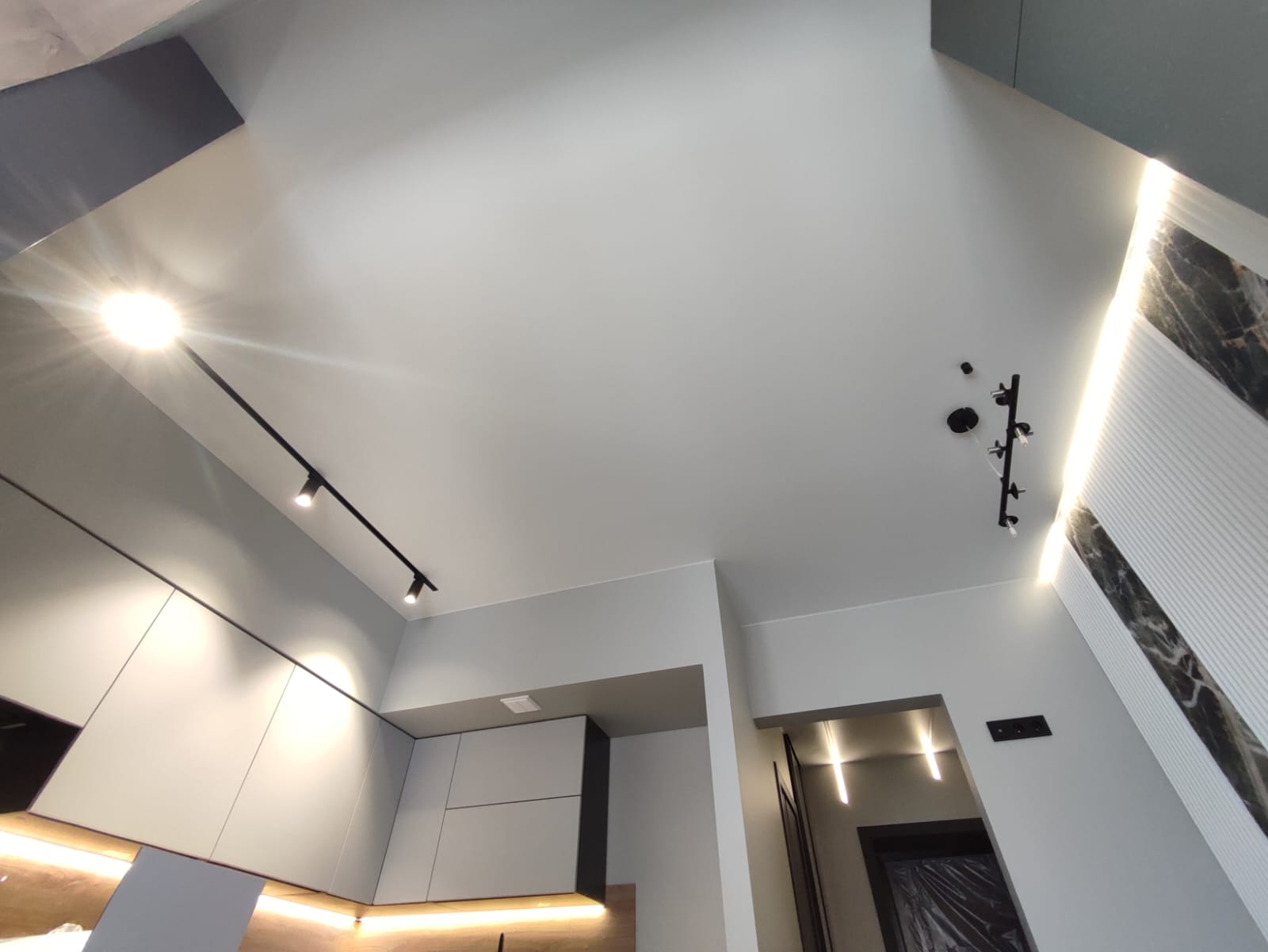 — Однотонные: Простые и минималистичные однотонные потолки идеально вписываются в любой интерьер и создают элегантный и сдержанный вид.
